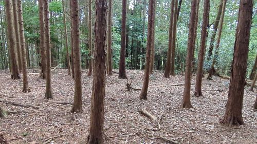 この城は奈良市長谷町にあります。長谷氏の城と言われ、TとUの両地域に分かれ従来はU部のみだと考えられてきたようです。「大乗院寺社雑事」の文明13年(1481)10月31日条に古市氏が長谷館を落としたという記事があり、長谷館と言われるのがT部とも考えられます。T部は居住性に富んだ郭になると想定され北西方面に堀切も存在しています。2本並んでいますが、一番西側の堀切は後世の通路で作られたものだと思われます。T部の南東側に広い後世に造られた平場が存在し、茶畑が元々存在していたようです。Tの南側にも平地を表記しましたが、こちらも後世に造成されたような感じです。U部は東西に細長い形になり、土塁や微妙な凹凸がある感じになり、西側に給水塔が建設されているので、改変が多少ある可能性があります。 Googleマップリンク |